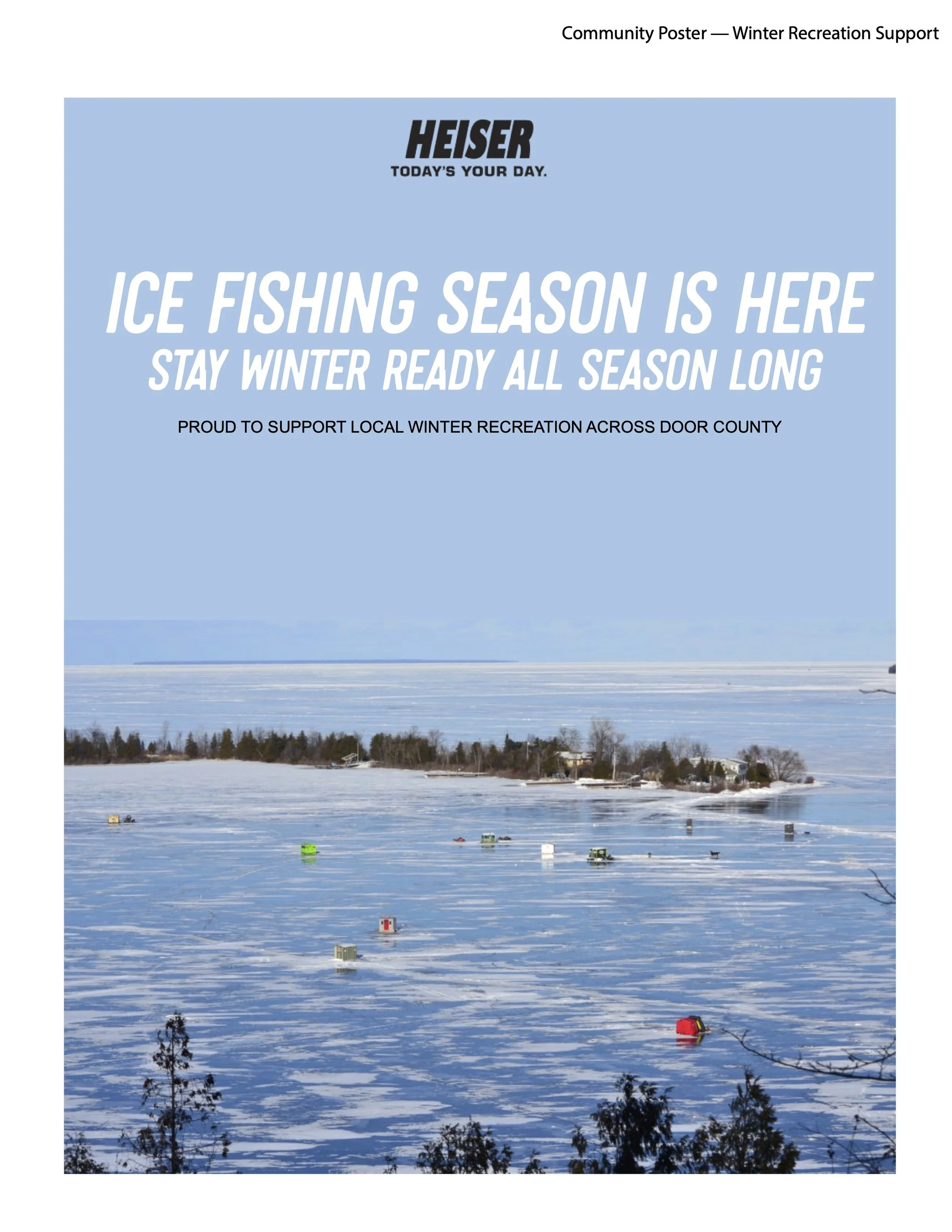 A mock up post for social- a seasonal community focused post celebrating Door County’s winter traditions and sights while reinforcing Heiser’s role as a trusted local partner.